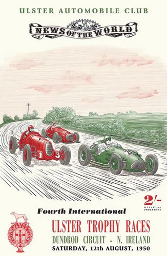Vintage 1950 Ulster Trophy Motor Racing Poster Print A3/A4