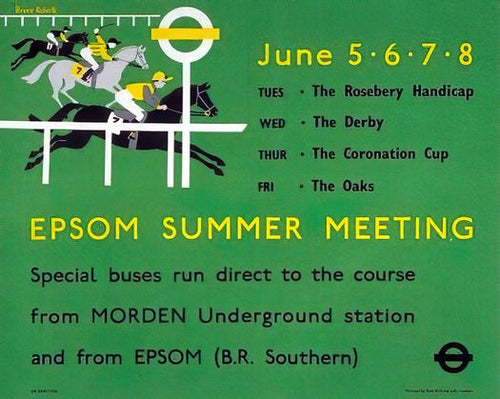 Vintage Epsom Summer Meeting Horse Racing Poster Print A3/A4