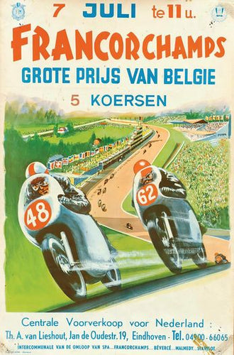 Vintage Belgian Motorcycle Racing Poster Print A3/A4
