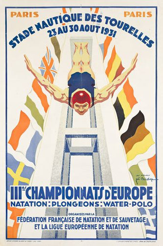 Vintage 1931 European Diving Championships Paris Poster Print A3/A4