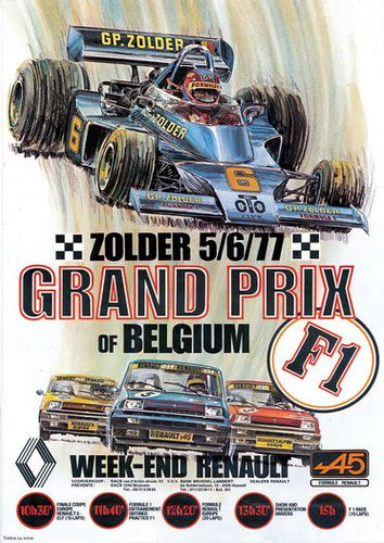 Vintage 1977 Belgian Formula 1 Grand Prix Poster Print A3/A4