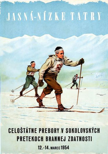 Vintage 1954 Hungarian Biathlon Poster Print A3/A4