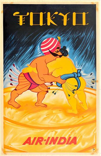 Vintage Air India Flights To Tokyo Poster Print A3/A4