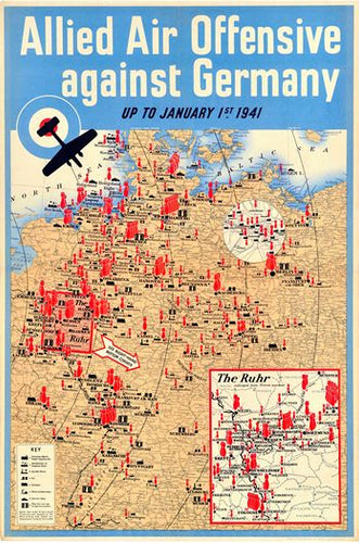 Vintage Map of Allied Air Offensive Against Germany 1941 Poster Print A3/A4