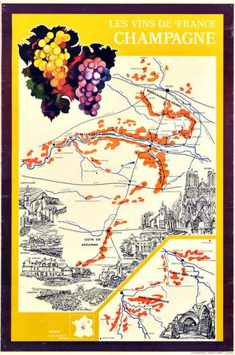 Vintage French Wines Champagne Region Map Tourism Poster Print A3/A4