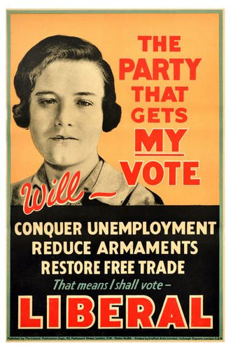 Vintage 1920's Liberal Party Gets My Vote Poster Print A3/A4