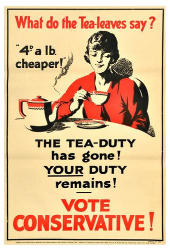 Vintage 1920's Conservative Party Abolishing Tea Duty Poster Print A3/A4