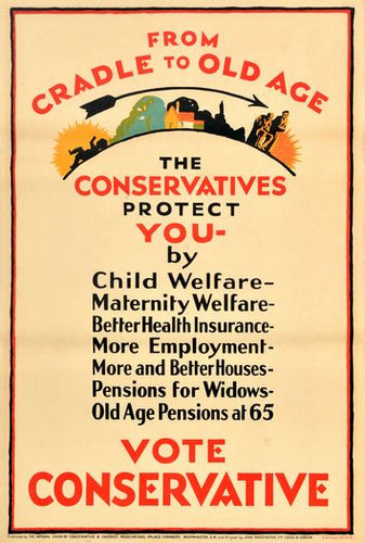 Vintage 1920's Conservative Party From Cradle To Old Age Election Poster Print A3/A4