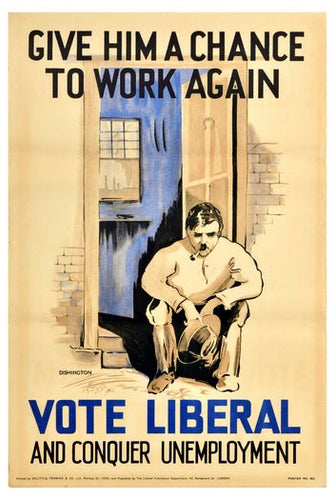 Vintage 1920's Liberal Party Conquer Unemployment Poster Print A3/A4