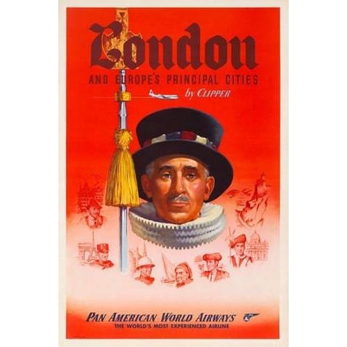Vintage Pan Am Flights To London Airline Poster A3 Print -